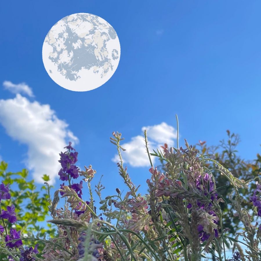 Der Blumenmond erinnert uns daran, dass die Natur in voller Blüte steht. Was möchte auch in deinem Leben erblühen?